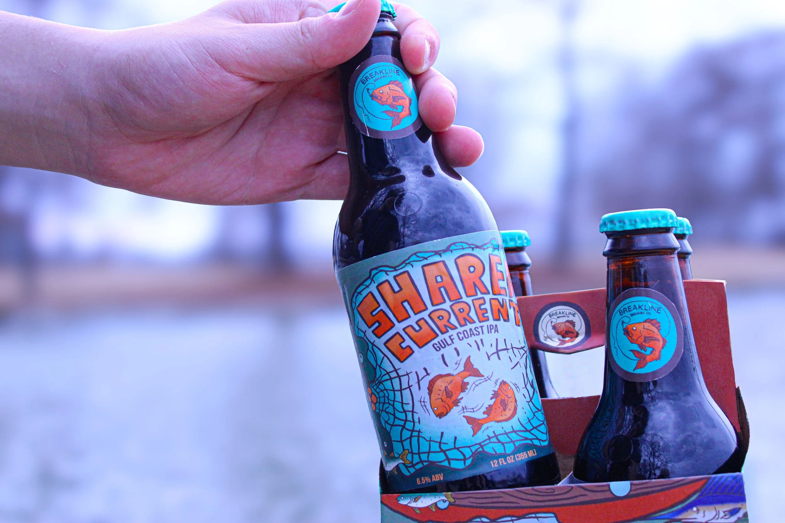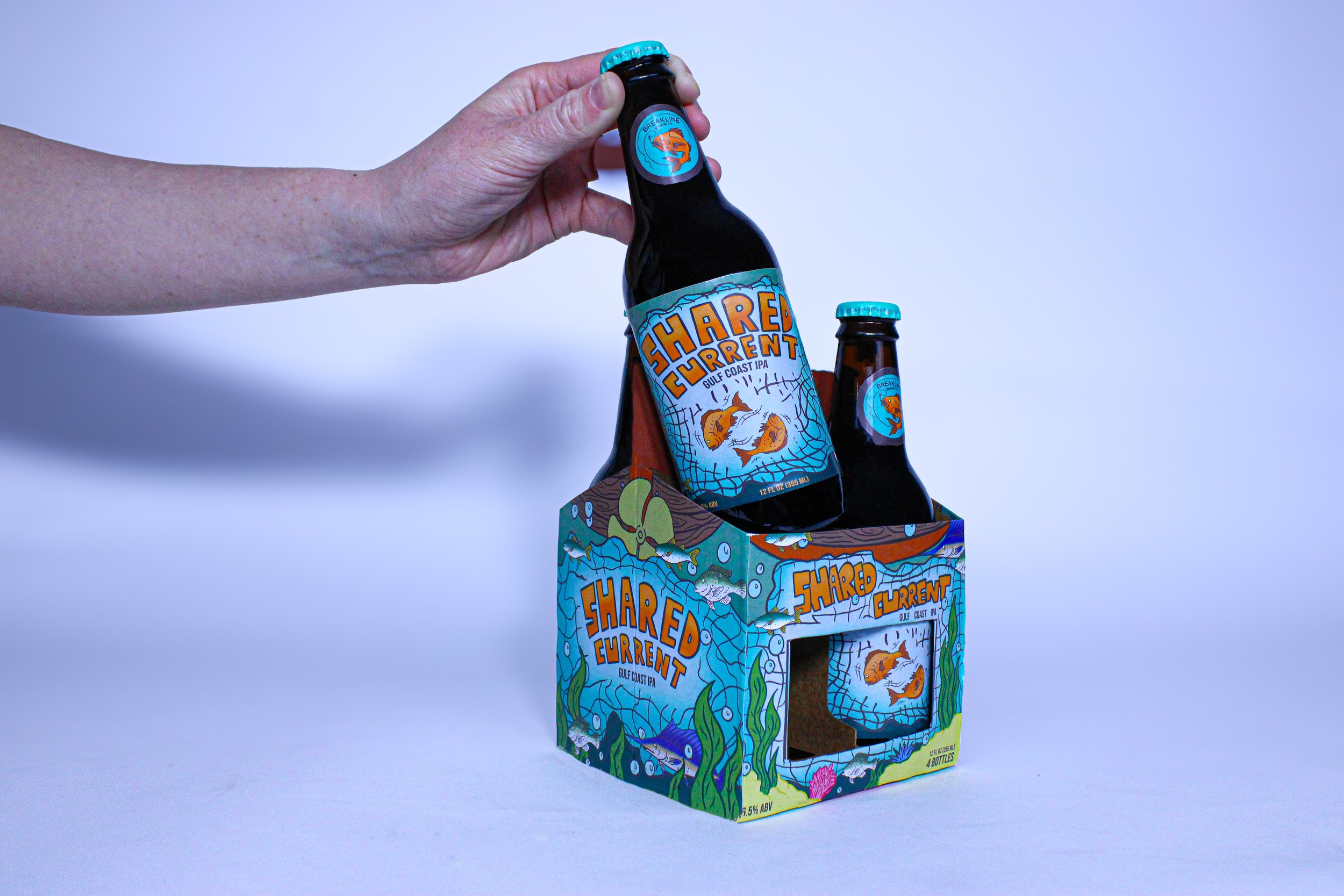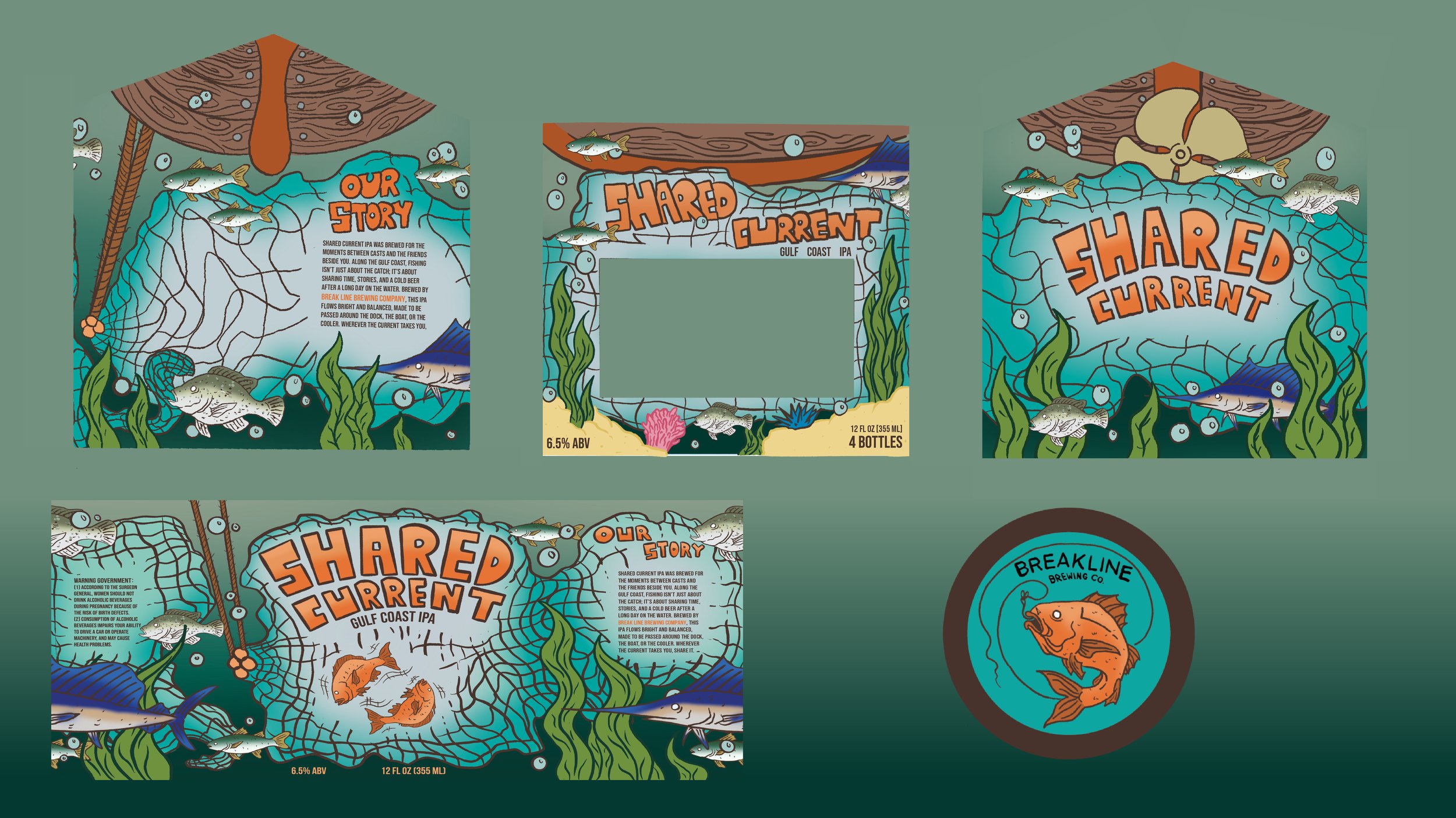 Shared Current IPA is a conceptual beer identity and packaging design created for Breakline Brewing, a fictional craft brewery inspired by Gulf Coast fishing culture and the wildlife that defines the region. The name Breakline references the point in the water where depths shift and fish gather, connecting the brand to the rhythms of coastal life and time spent out on the water.